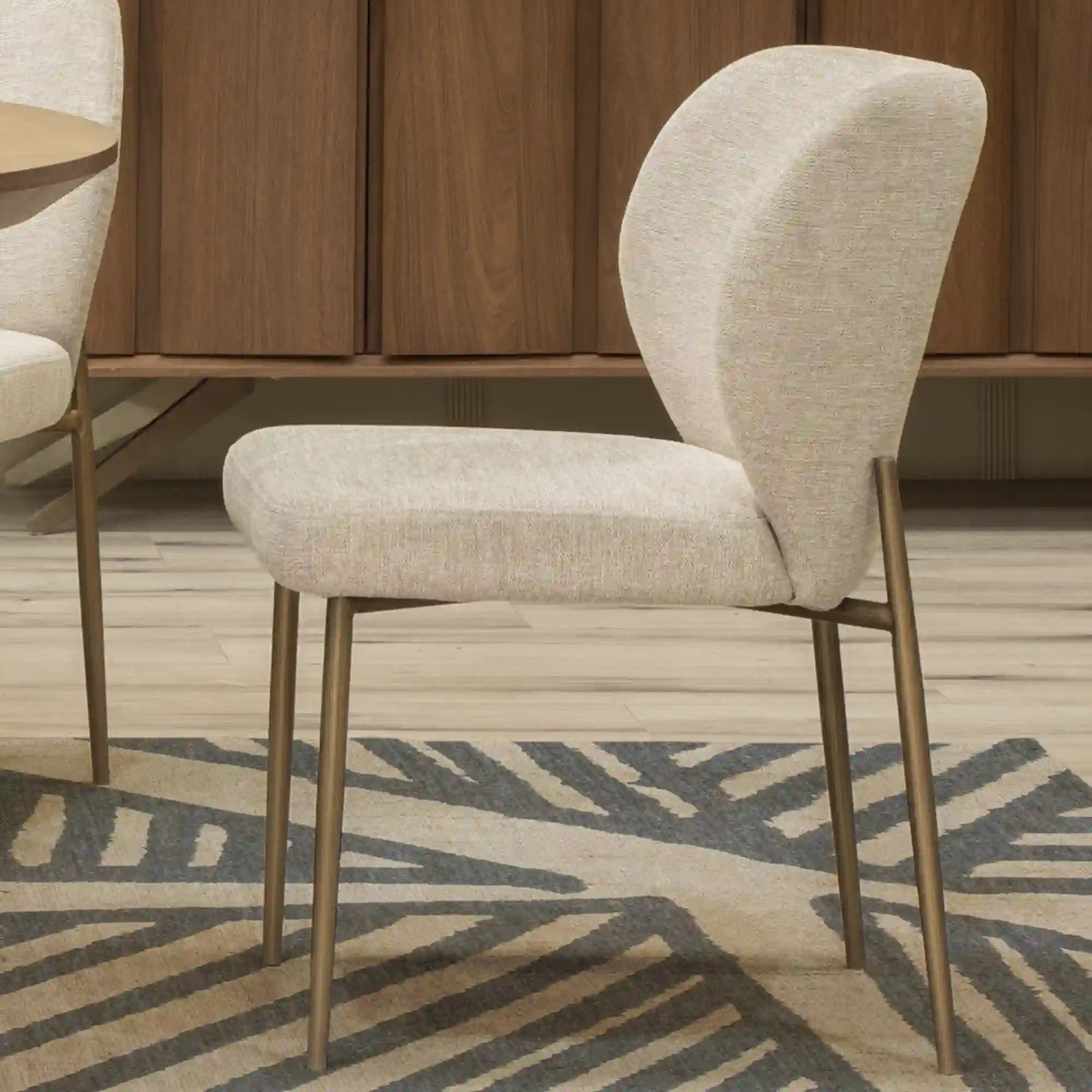 La Silla Timaru Beige es una expresión de elegancia moderna, diseñada para aportar un toque de sofisticación a cualquier espacio. Su estructura delgada y refinada, combinada con patas metálicas en un acabado dorado envejecido, le otorgan una presencia ligera pero impactante. El asiento y respaldo están tapizados en una rica tela verde oliva, añadiendo profundidad y calidez visual, mientras que la forma curvada del respaldo proporciona un apoyo ergonómico, asegurando comodidad durante largos periodos de uso. La Silla Timaru Beige es una pieza imprescindible para aquellos que buscan añadir un elemento de distinción y modernidad a su decoración.